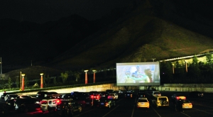车辆停泊在西藏首家汽车电影院中(4月7日摄)。