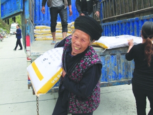 近日,花垣县检察院干警在梁宜勇检察长的带领下,来到猫儿乡排腊光村及蜂塘村开展精准扶贫调研活动,并为排腊光村结对帮扶对象送去了仔猪和饲料。当天,帮扶干警向28户结对帮扶对象共发放仔猪119头,饲料238包。为帮助群众更好地喂养生猪,工作队还请来了技术员对如何养猪及配料进行了现场讲解和指导。图为精准扶贫对象户在领取饲料。
