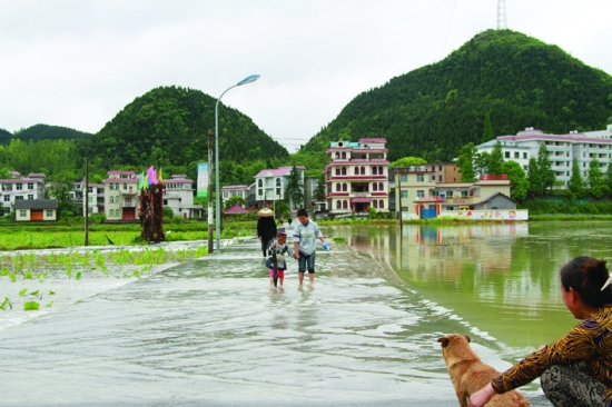 5月7日,花垣县龙潭镇龙潭村,村路成水路。 当天,花垣县境内下大暴雨,村道、农田被洪水淹没。当地群众及时开展抗洪自救。 龙恩泽 摄