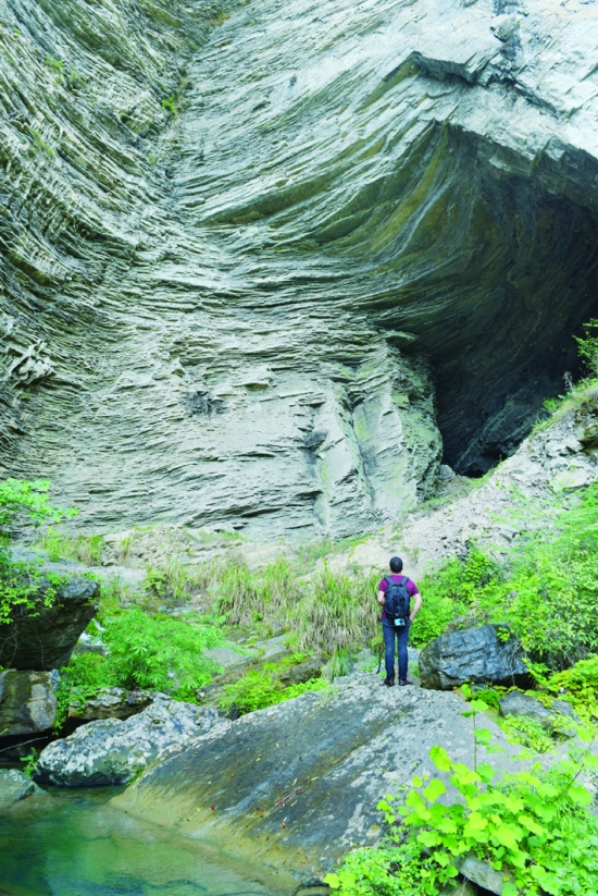 大绝壁下的雷公洞口。 向汉品 摄