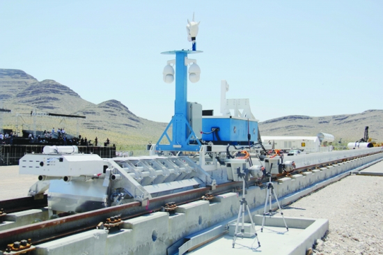 5月11日在美国西部内华达州拍摄的“超回路推进系统”测试装置。 新华社记者 郭 爽 摄