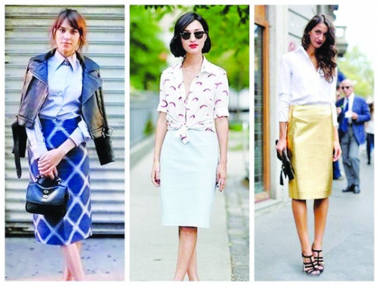 铅笔裙+衬衫=OL范儿 简单的衬衫,干净干练,适合各种上班女性。铅笔裙其背后中央的开衩或是打褶,能够保持走路时候的优雅姿态。