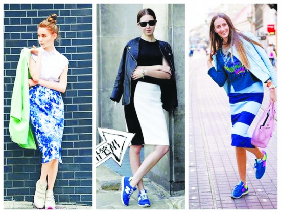 铅笔裙+运动鞋=潮流搭配 时下时尚界,复古和运动风并驾齐驱,刮得猛烈。所以运动鞋搭配铅笔裙时下最流行,最个性。上衣选择一款短打上衣,或是搭配卫衣,都是至in的装扮。 (本报综合)