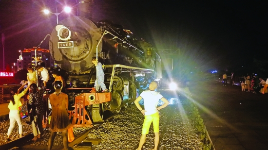 夜幕降临,市民来到风光带的火车头广场游玩。