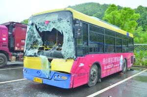 浙江舟山被车轮击中的公交车(6月3日摄)。