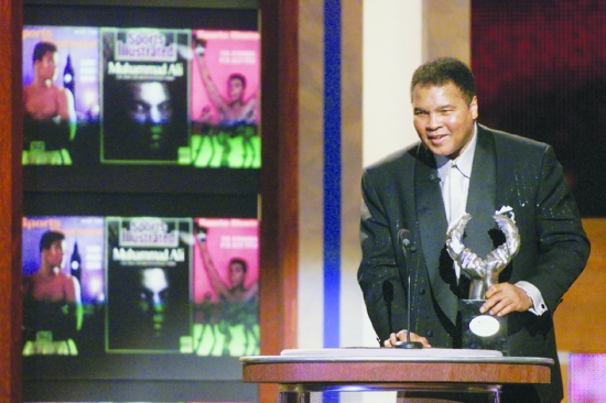 这是阿里在由美国《体育画报》举办的20世纪体育颁奖礼上领取“世纪运动员奖”(1999年12月2日摄)。 新华社/路透