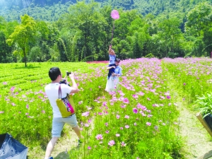 6月5日,游客正在位于吉首市绿道的吉祥花谷内拍摄合影。当天,以亲山亲水亲子亲情主题为一体的吉祥花谷正式开园营业,首日迎送旅客近千人次。