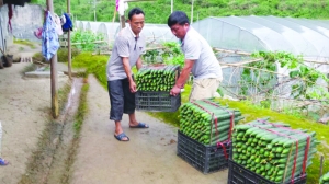 6月8日,古丈县默戎镇九龙村大棚蔬菜基地里,蔬菜种植户把刚刚采摘的黄瓜打捆、装车,以运往吉首市某大型超市销售。去年,该县审计局帮助该村种植户改善大棚蔬菜生产条件,确保稳定增产的基础上,今年又协助该村实现了与周边地区超市的产销对接,精准扶持该村发展产业。随着销售区域不断扩大,该村的大棚蔬菜产业呈现产销两旺局面,种植户同比增收20%以上。