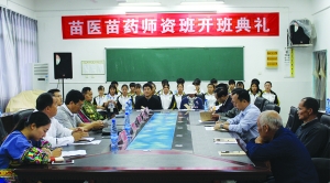 6月2日,花垣县及周边县市10多名苗医苗药知名专家欢聚花垣县职业高级中学,参加为期3天的苗医苗药师资班。此次苗医药师资班由花垣蚩尤文化研究会及该县职中共同举办。该县职中负责人介绍,师资班培训,主要是让各位专家学者相互交流、探讨,取长补短,编写出各类苗医苗药校本教材,为该校明年开设苗医苗药专业提供教材、师资及技术保障。 石东胜 石 宇 摄