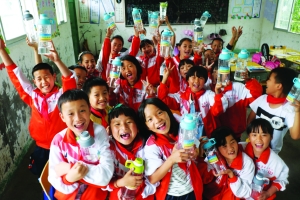 6月12日,湖南福鑫体育工程公司为吉首市马颈坳镇白岩小学260余名学生每人赠送一个容量为1升的优质太空杯。同学们说:“感谢爱心人士的关心,我们人人有了一个安全卫生的大水杯 !” 杨朝云 摄
