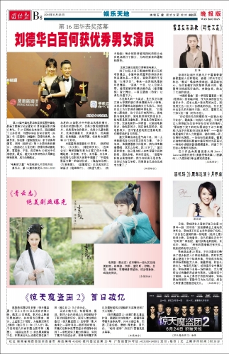 第16届中国电影华表奖颁奖暨中国电影新力量推介纪念建党95周年重点影片推介典礼,于24日晚在北京举行。现场揭晓了众多奖项,刘德华和白百何分别凭《失孤》与《滚蛋吧!肿瘤君》获得优秀男、女演员奖,徐克靠《智取威虎山》拿下优秀导演奖,同时《捉妖记》等9片获优秀故事片,《西游记之大圣归来》获得优秀动画电影,黄建新、宁浩、成龙等为10部片子代表颁奖。最后,姜文与王家卫两位大导演也神秘亮相,成为当晚焦点。 “电影新力量”与致敬献礼片百花齐放 典礼上,第16届华表奖从2014-2015年度的28部影片中共颁出优秀故事片、优秀农村题材影片、优秀少数民族题材影片、优秀青年创作影片、优秀少儿题材影片、优秀动画影片、优秀音乐、优秀摄影、优秀编剧、优秀导演、优秀男/女演员等20个奖项。 本届盛典适逢建党95周年,《我的战争》、《大火种》、《难忘的岁月》、《古田会议》等致敬献礼影片占据了很大分量。喇培康、江志强、于冬、王中磊、王长田、张昭等几位影视大佬联手揭幕了“中国电影新力量”的启动仪式,《陆垚知马俐》、《大鱼海棠》、《盗墓笔记》以及成龙的三部新片《绝地逃亡》、《铁道飞虎》、《功夫瑜伽》等多部即将登陆院线的影片也在现场进行了推介,为即将到来的暑期档预热。 王家卫姜文献脱口秀寄语电影人 除了红毯上目不暇接的明星以及奖项的悬念,本届华表奖嘉宾的缤纷多彩的表演也是一大亮点。首做导演的王宝强“大闹天竺”,带来一支异域风情的印度舞蹈,“笑果”十足,让人忍俊不禁。摇滚前辈郑钧携动画作品《摇滚藏獒》登上舞台,一首主题曲《热爱》让典礼升温不少。 不过典礼的一大亮点,是王家卫与姜文两大导演的脱口秀表演最为令人惊艳。王家卫导演的出场就颇为文艺范儿,他也在台上为大家讲述他眼中的电影,“以前有人跟我讲,这个行业只有两种人,做电影与拍电影的,做电影的讲究的是资本,拍电影是更注重电影,两者是没有高低之分的。这是电影的一体两面,以前拍电影的多,做电影的少,现在做电影的多,拍电影的少,但不管是拍电影还是做电影,你都得选好自己的路。” 姜文导演出场也是气场十足,他一上来就调侃自己和王家卫是老力量,“多少年来,他就梗着脖子往前走,因为他老戴着墨镜,我怎么办呢,我53岁了。”姜文同时坦言,自己是年轻人和老导演之间的卧底,想说点啥,其实没话说,“趁着年轻拍点真想拍的,因为年轻真不是优势,当你以为自己年轻,没想到自己站在这成老力量了。” (本报综合) |