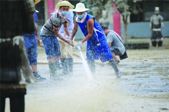 6月24日,龙山县教体系统应急队正在里耶小学开展清淤工作。 余 敏 摄