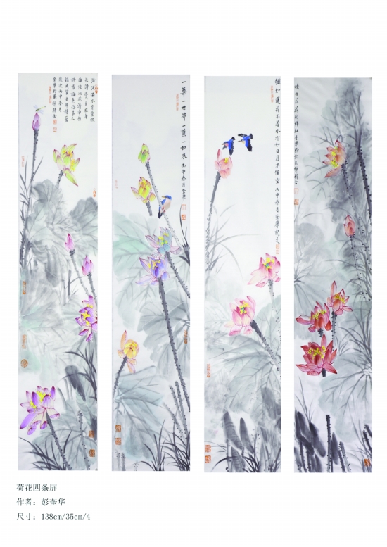 荷花四条屏