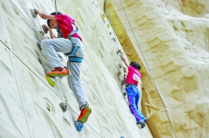 7月16日,两名希望之星参赛选手在攀岩比赛中。