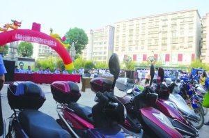 7月28日上午,永顺县公安局刑侦大队准备为失主发还被盗的摩托车。为进一步推动“打击盗抢骗毒”专项行动深入开展,当天,该局在县城休闲广场对追缴的赃物公开进行退还,共退还被盗的摩托车13辆、手机4台、现金7800元。