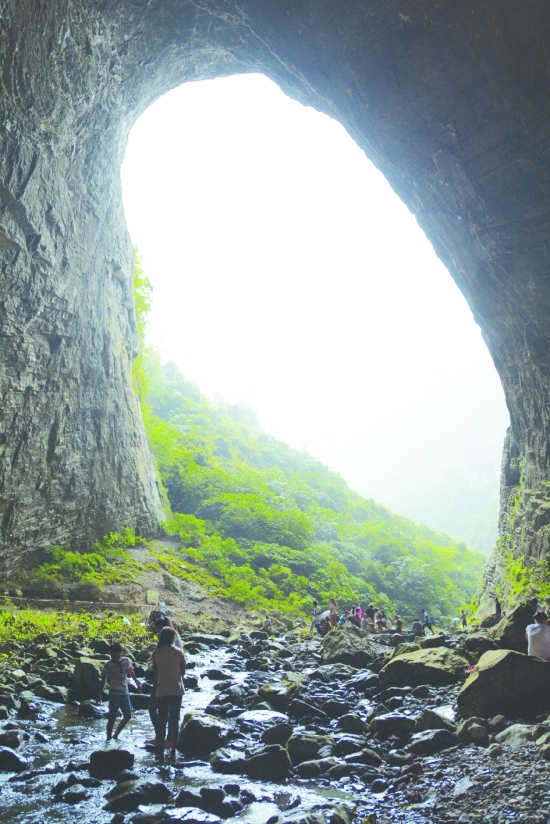 穿洞出洞口,不远处有村庄,“屋舍俨然”。