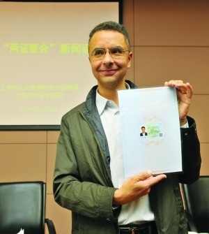 这是获得上海首张外国人来华工作许可的卓尔清(11月3日摄)。