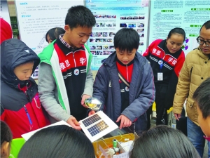 11月11日,雅思中学初中学子陈五航、李珣阳为观众讲解科技创新作品。