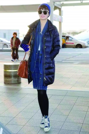 法则三:叠穿保暖又显瘦 将牛仔外套叠穿在羽绒服里面,视觉上打造出修身的感觉。