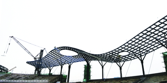 体育场的防晒棚像一只大鹏,展翅欲飞。