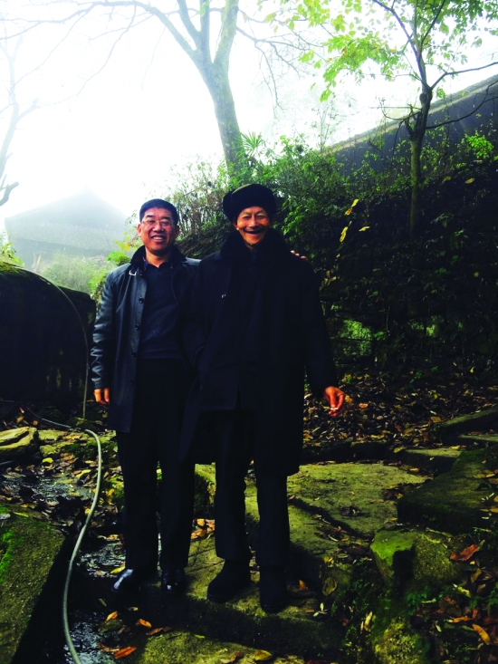 本文作者与烈士姚彦的侄子姚技芳合影。
