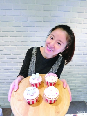 12月16日,林心如在微博晒出了一组学做蛋糕的照片,成品有模有样。照片中孕妈林心如素颜出镜,心情大好开心比出剪刀手。 (本报综合)
