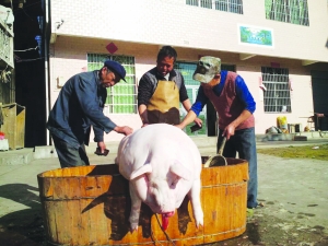 12月17日,永顺县松柏镇花桥村罗天贵家正在杀年猪。冬至已过,春节临近,家家户户开始杀年猪、备年货,“年味”越来越浓了。