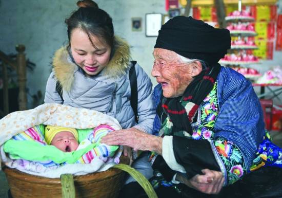 看着满月不久的曾玄孙(第六代),欧梅香老人格外开心。