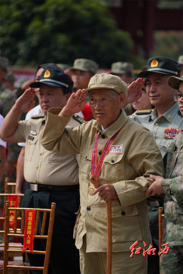现场,8位神采奕奕、胸前挂满军功章的抗美援朝老兵格外引人注目。“当年,我们也是这样着戎装、戴红花、骑大马,在锣鼓和爆竹的欢送声中出发的。现在,看到这些有志气、有理想、有目标的孩子,就好像看到了当年的自己。”面对一张张朝气蓬勃的面孔,今年89岁的抗美援朝老兵刘贵英思绪纷飞,难掩内心激动。