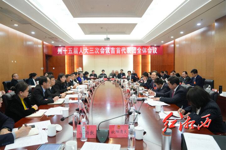 湘西州十五届人大三次会议吉首代表团会议现场。本组图片由团结报全媒体记者 刘炜 见习记者 宿中元 摄