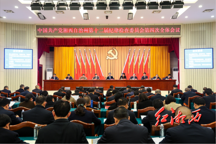 湘西网2月4日讯(全媒体记者 李再兴)2月3日,中国共产党湘西自治州第十二届纪律检查委员会第四次全体会议在吉首召开。州委书记虢正贵出席并讲话,强调要深入学习贯彻习近平总书记关于党的自我革命的重要思想,贯彻落实二十届中央纪委三次全会和十二届省纪委四次全会精神,坚定不移把党的自我革命进行到底,为全面建设现代化新湘西提供坚强保障。州委副书记、州长陈华,州委副书记、花垣县委书记廖良辉,州人大常委会主任吴凌频,州政协主席李平出席。