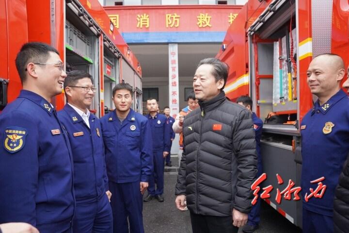 湘西网2月9日讯(全媒体记者 付丹)2月8日,腊月二十九,正值“土家年”,冰雪未融,年味已浓。湘西州委书记虢正贵走访慰问坚守在一线执勤的公安民警和消防指战员,为他们送去新春的祝福,并叮嘱他们加强风险防范,守住安全底线,确保群众过上一个温暖、祥和的春节。