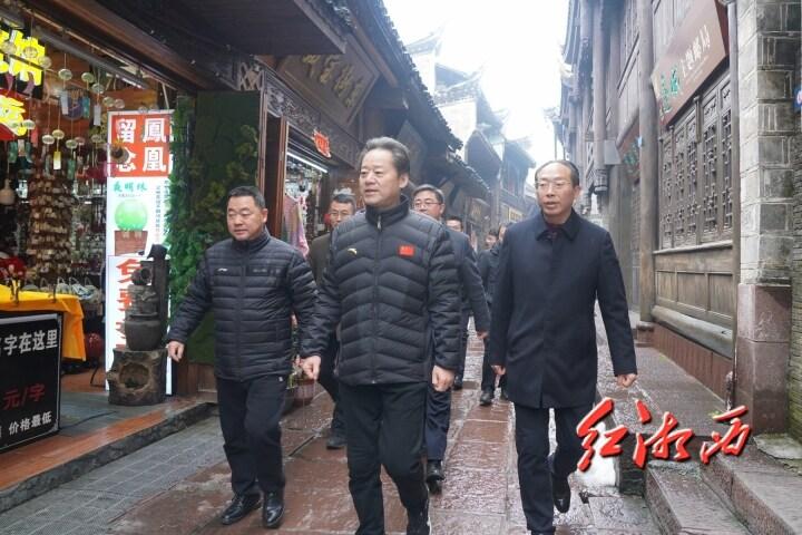 虢正贵指出,近日,凤凰古城被评为国家5A级旅游景区,要抢抓文旅发展机遇,不断丰富文旅内涵,创造最优环境,拓宽营销渠道,增强辐射带动力,全力打造国内外享有盛名的旅游目的地。要充分挖掘湘西特色文化,宣传好湘西民族文化的独特魅力,广泛开展群众性文化活动,让民族文化代代传承,更好地满足人民群众对高品质旅游的向往和追求。要树立“来了都是客”的理念,优质服务,诚信经营,让游客们在湘西度过一个愉快春节。