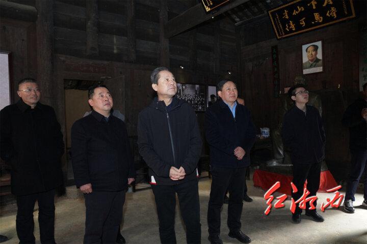 在毛坝乡李烛尘故居,虢正贵与基层干部、名人后裔深入交流,认真了解故居保护利用和修缮、周边环境改善等情况。他强调,要深入挖掘名人文化资源价值,完善修缮维护方案,加强日常管理,把名人故居保护修缮与乡村振兴、红色教育、文化旅游等结合起来,使文化资源发挥更大的历史价值、文化价值和经济价值。