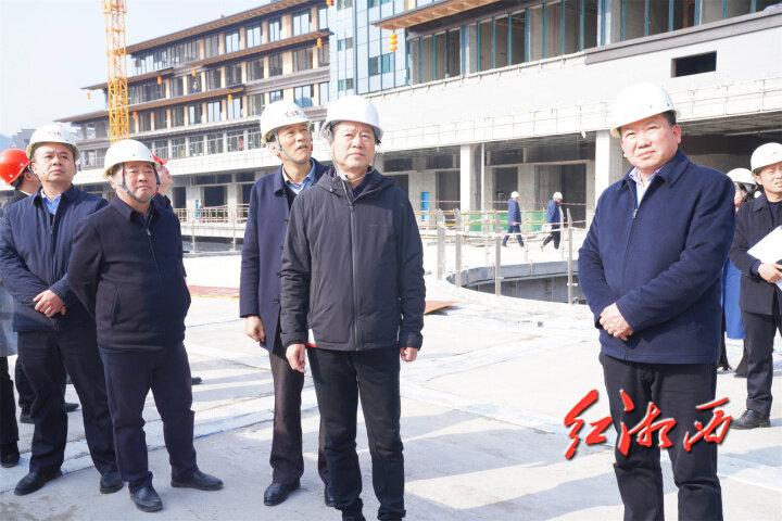 随后,虢正贵来到芙蓉镇湘西北游客集散中心项目建设现场,察看在建项目进度。他嘱咐相关负责人,要在保证质量和安全的前提下,加快项目建设进度,确保如期建成使用。要完善配套服务设施,加强旅游资源宣传,提高湘西文旅品牌的知名度。