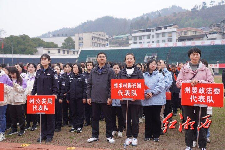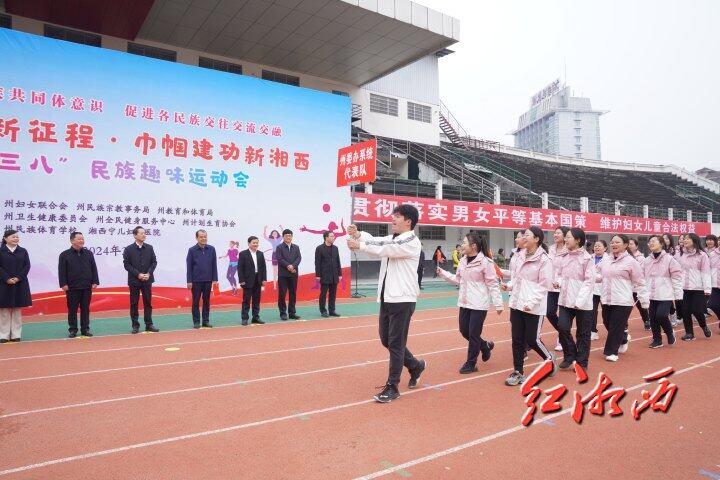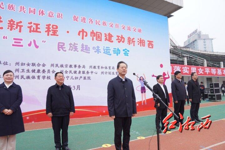 湘西网3月7日讯(全媒体记者李再兴 肖颖 通讯员 彭敏)3月6日上午,在第114个“三八”国际妇女节来临之际,由湘西州妇联等6个部门联合主办的湘西州“跟党奋进新征程·巾帼建功新湘西”庆“三八”民族趣味运动会在州体育中心举行。州委书记虢正贵出席并宣布运动会开幕。州委常委、州委组织部部长、州委统战部部长贾珍文主持开幕式。
