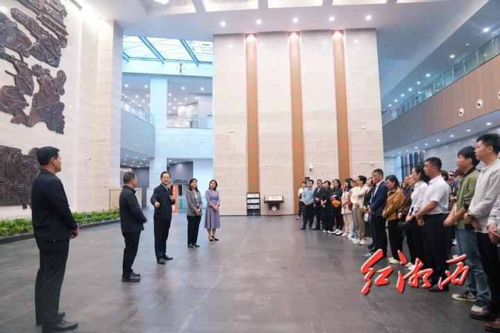 在湘西州博物馆,虢正贵走进血性湘西展厅,边看边交流,认真了解湘西州的红色历史文化。在随后的宣讲环节,虢正贵从习近平总书记讲了什么、如何学习把握习近平总书记的重要讲话和指示精神、怎么结合湘西州实际抓好贯彻落实等方面进行讲述。“习近平总书记对湖南的文化建设提出两个融合发展,一是文化与科技的融合发展,二是文化与旅游的融合发展。”他表示,要加强历史文化的保护传承,擦亮红色湘西名片,用好精准扶贫首倡地十八洞村、湘鄂川黔革命根据地旧址等红色资源,加强红色教育,引导激励广大干部群众和青少年学生涵养爱国之情,实践报国之行,发扬优良传统、赓续红色血脉。要大力推进文化和旅游深度融合、文化和科技深度融合,依靠科技力量建设数字化博物馆,在进一步提升湖南文化软实力上作出湘西贡献。