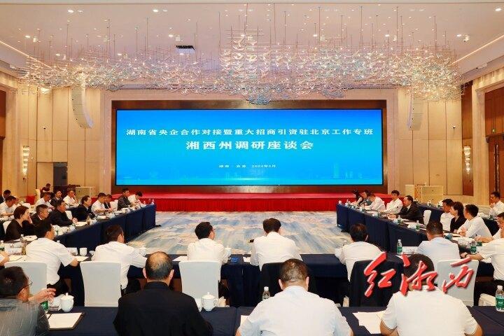 湘西网5月11日讯(全媒体记者 彭蕾)5月10日,湖南省央企合作对接暨重大招商引资驻京工作专班湘西调研座谈会在吉首召开。省政协副主席、湘西州委书记虢正贵,省驻京工作专班主任郑建新出席。