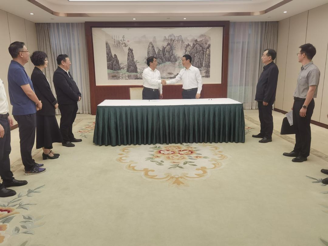 湖南省配合中央生态环境保护督察协调联络组副总协调人曹普华从中央第五生态环境保护督察组总协调人岳建华手中接过本次环保督察向湖南交办第一批信访举报件。彭雅惠 摄