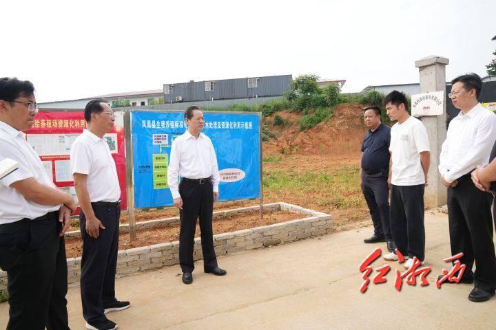 虢正贵在凤凰县双胞胎养殖场详细了解生态环境突出问题整改情况。团结报全媒体记者 刘炜 摄