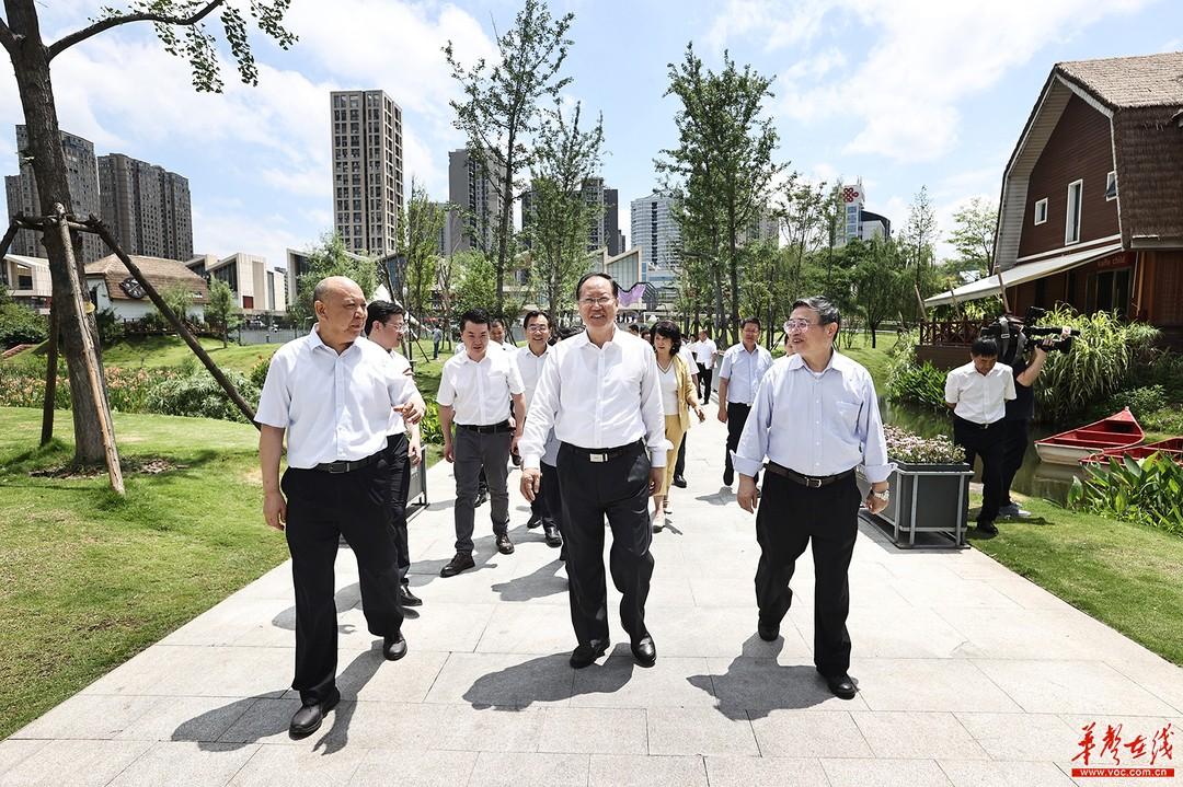 蒋卓庆、毛伟明检查长沙圭塘河生态保护修复工作。