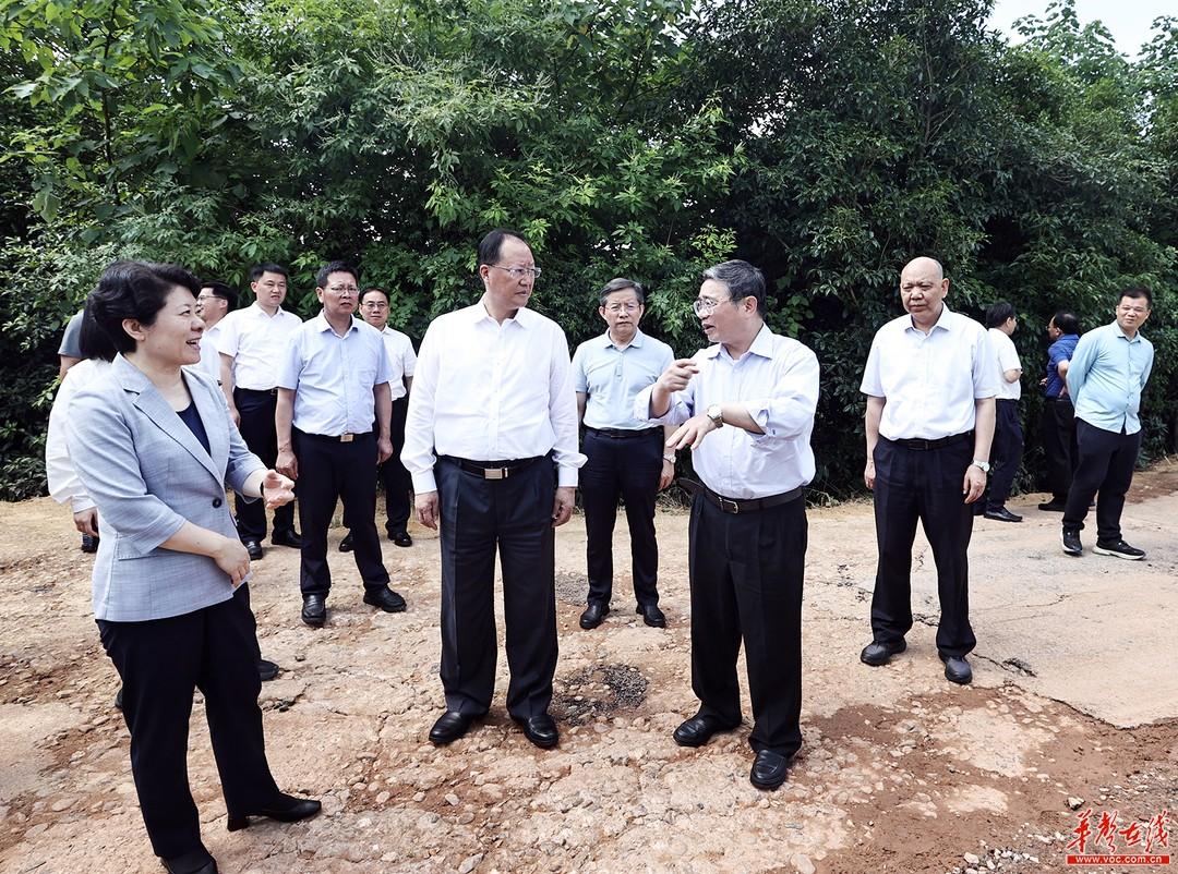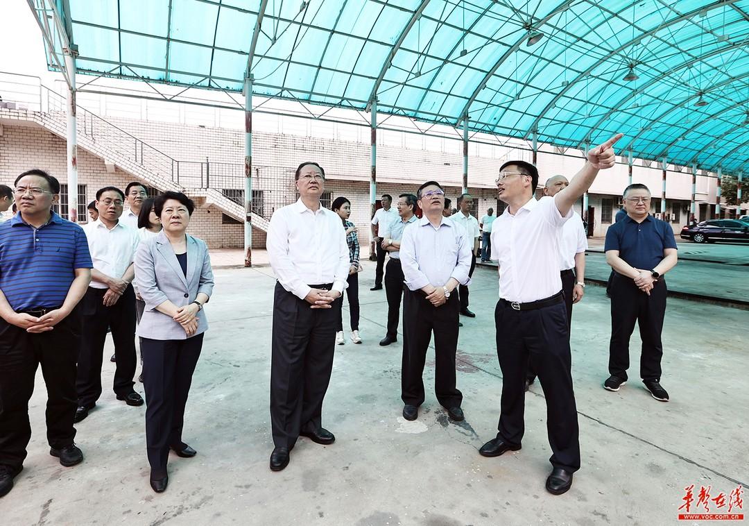 蒋卓庆、毛伟明在雨花区长郡学校洪塘校区了解建筑垃圾堆放问题整改情况。