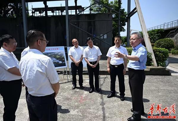 5月28日,沈晓明在怀化市全城污水处理厂实地察看进水口采样点、中控室和实验室,了解监测数据记录、水样检测等情况。