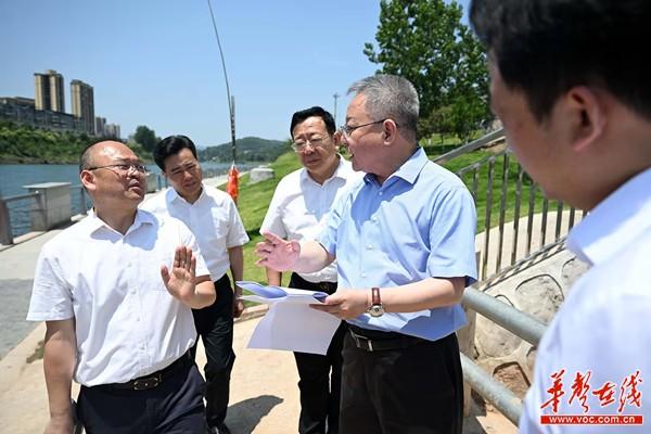 5月28日,沈晓明在㵲水河茅谷冲溪段了解截污纳管等整改措施的实施进度。