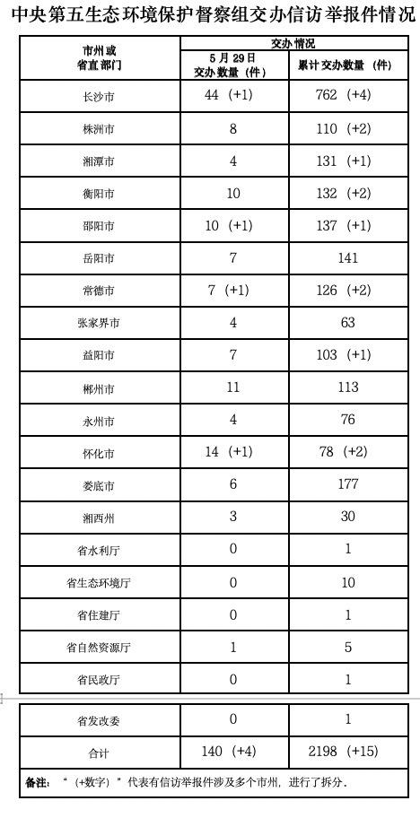 华声在线5月29日讯(全媒体记者 彭雅惠)今天,中央第五生态环境保护督察组向我省交办了140件群众信访举报件,均来自5月28日省内群众来电来信举报,其中,重点件13件。