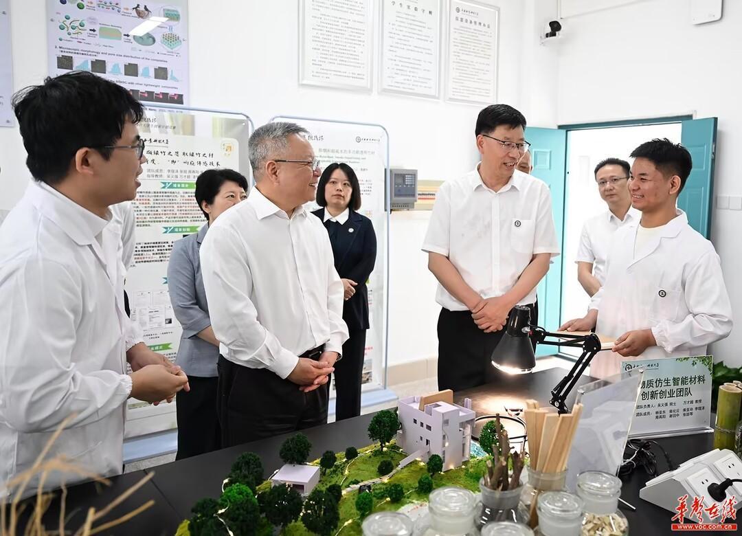 6月6日,沈晓明在中南林业科技大学了解大学生创新实践、就业创业等情况。
