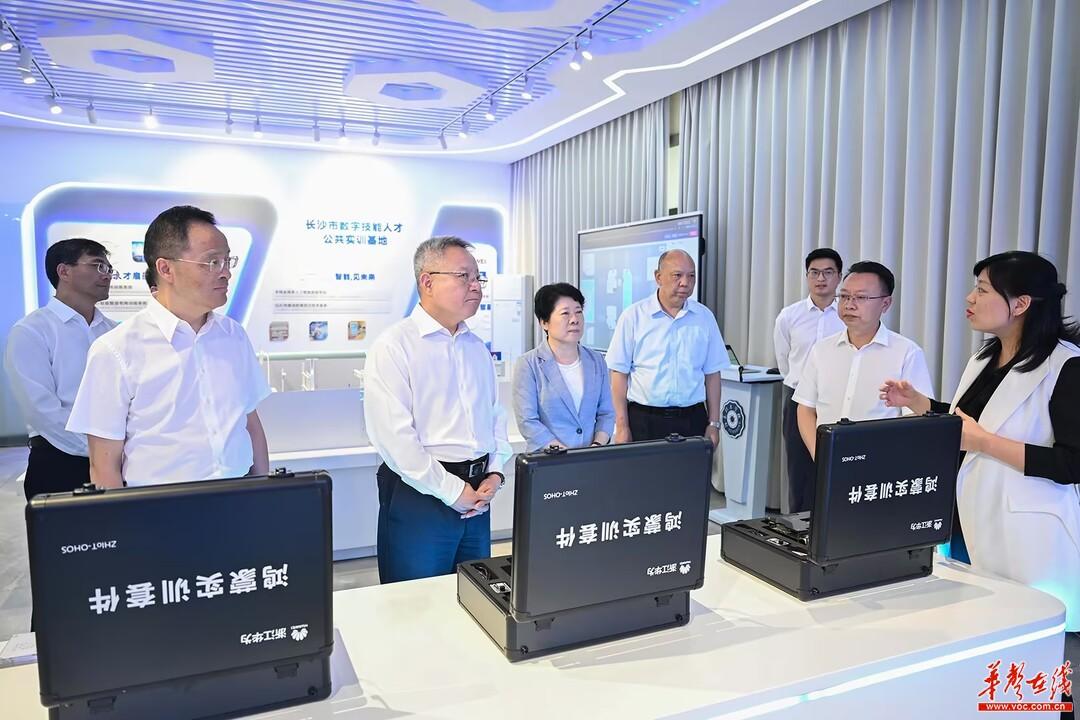 6月6日,沈晓明在长沙市数字技能人才公共实训基地听取技能人才培训等情况介绍。