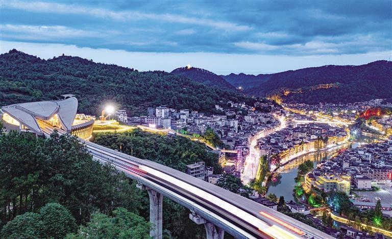 磁浮快线穿梭在凤凰的山水与古城之间,带给游客舒适便捷的享受。