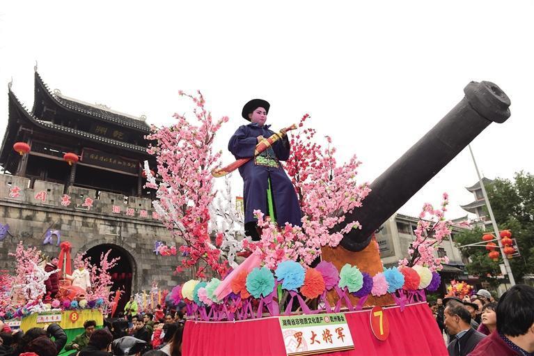 乾州春会渊源于古代民间宗教祭祀活动,以后逐渐成为庆祝节日的一种装饰艺术。每逢节日或喜庆之际,这些色泽艳丽、造型拙朴、寓意明快的各类纸扎品,既为迎春祈福活动增添了几分喜庆欢快色彩,又能让人们从中会意到吉首人的生产、生活缩影和精神文化追求,是湘西神秘文化鲜活生动的构成因子。