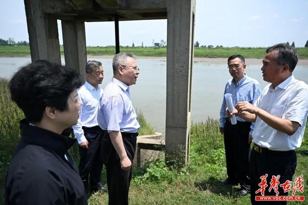 6月11日,沈晓明在益阳市南县育乐垸一线防洪大堤察看电排闸涵闸现状。